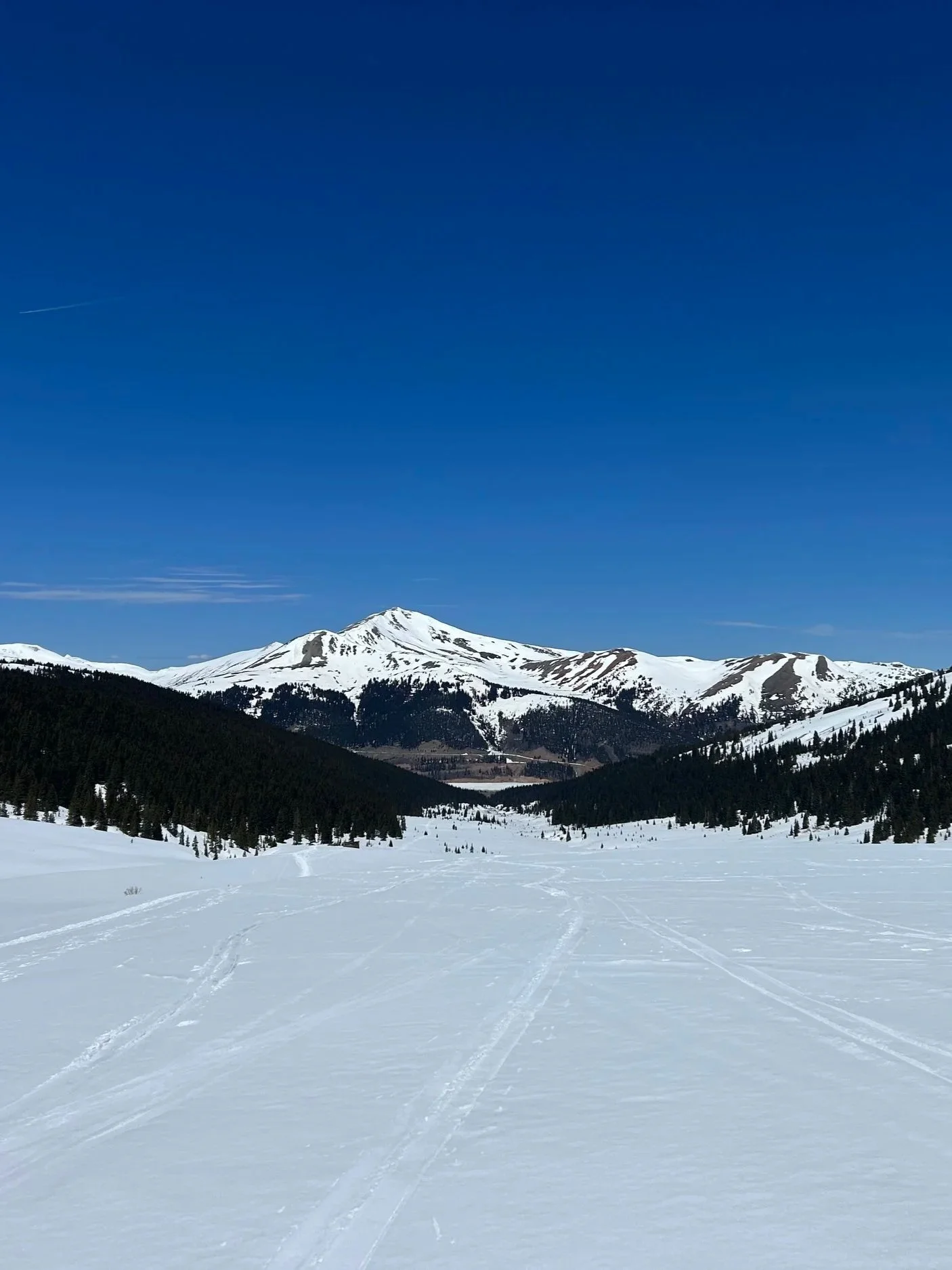 You’ll get up-close views of the Tenmile Range, dramatic ridgelines, and a wide open meadow that feels straight out of a postcard—especially after fresh snowfall.
